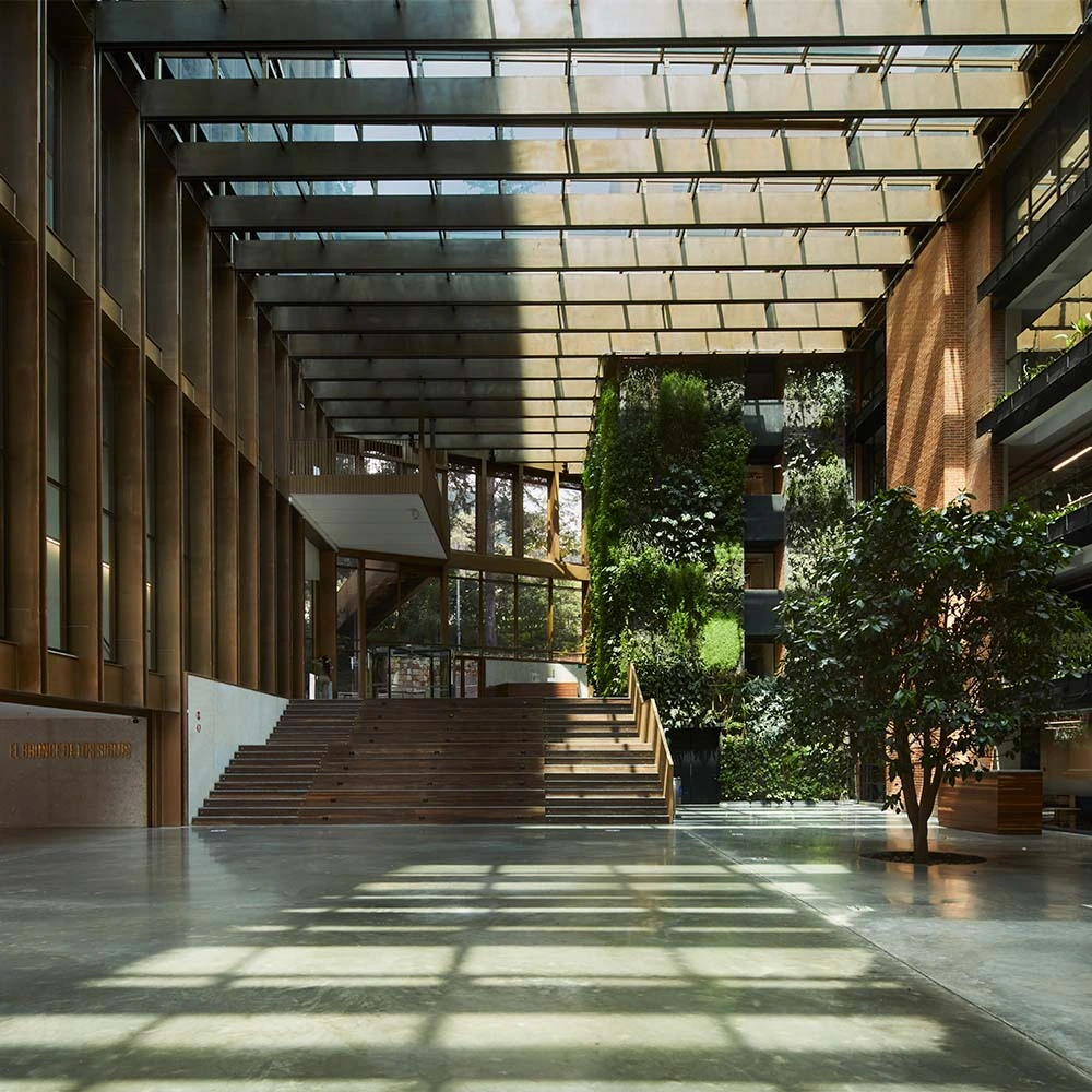 En palabras de Ortiz, el punto de partida fue “un basamento de concreto que contiene un laboratorio especializado de estructuras a más de doce metros de profundidad, anclado en el cerro y dotado de luz natural”. Además, un atrio anexo comunica la estructura con el resto de la universidad. “Se vincula de manera fluida y franca, con todos los niveles del campus que en él convergen”, asegura.